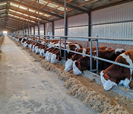 內(nèi)蒙古赤峰調(diào)理場:調(diào)理場位于內(nèi)蒙古自治區(qū)赤峰市阿魯科爾沁旗沃金四分場,赤峰基地占地403畝,已建設“場床一體化(多功能)”牛舍20棟,可使用牛床面積58,800㎡,飼草庫面積5,000㎡,育肥牛可存欄7,500頭,用于應激調(diào)理,可養(yǎng)殖架子牛9,000頭以上。